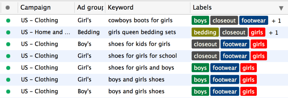 Eftersom du kan tagga upp olika element med etiketter i Adwords betyder det att du har snabbare åtkomst till en grupp med data som du kanske annars hade behövt spendera längre tid med att klicka runt i Adwords för kunna jämföra.