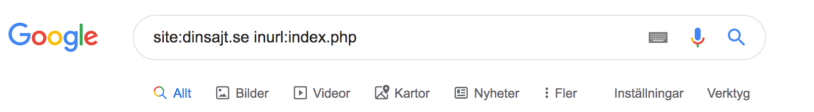 Ser du någon annan bättre gemensam nämnare så byter du självfallet ut index.php mot det du hittat i URL:en. Här är vår artikel om avancerade sökfunktioner.