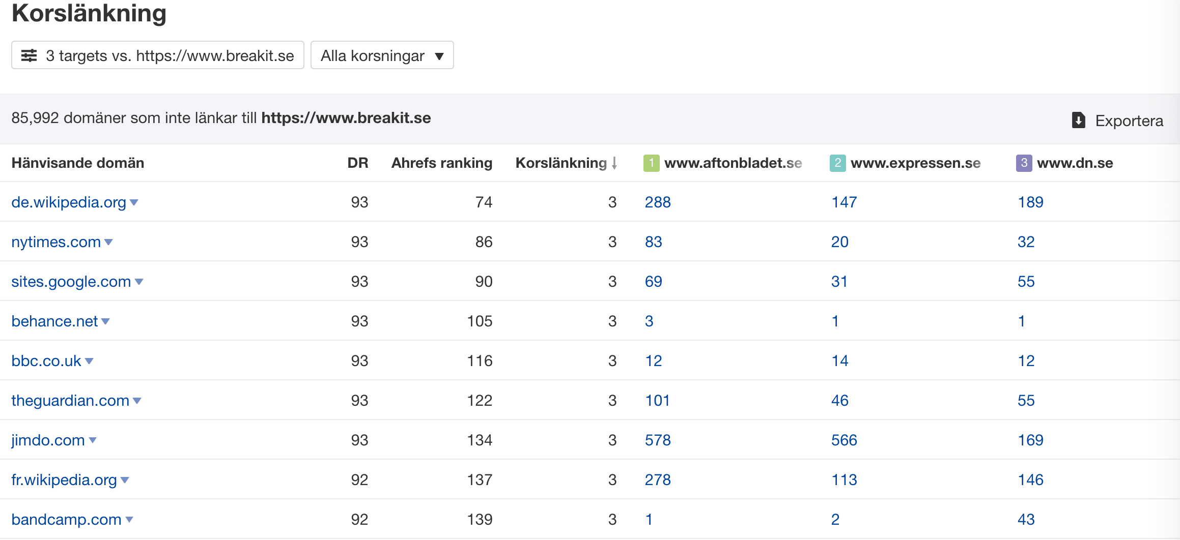 Att manuellt hitta sajter och fråga ifall de skulle vilja länka till din sajt kan vara tidskrävande, och det är sällan det faktiskt resulterar i en länk. Det finns dock ett super-smidigt verktyg vi kan använda oss av från Ahrefs som heter ”Link Intersect” eller ”Korslänkning” som det så fint heter på svenska.